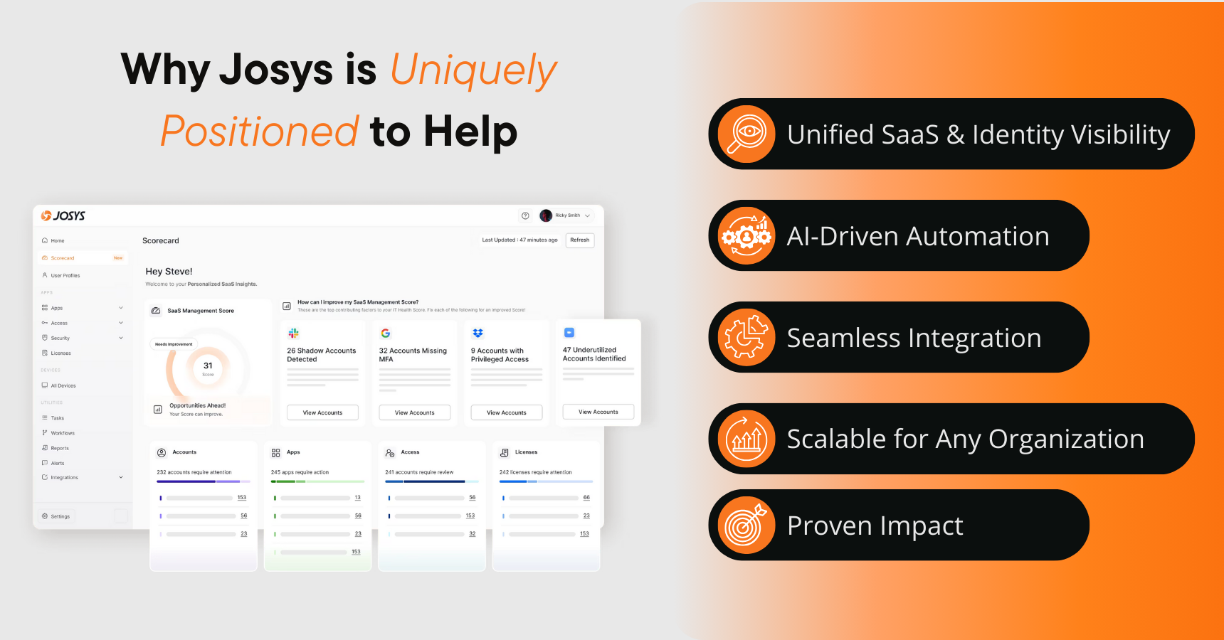 Platforms like Josys deliver these capabilities at scale, combining SaaS discovery, AI-driven policy enforcement, and seamless integrations to give businesses a single source of truth for all identities.