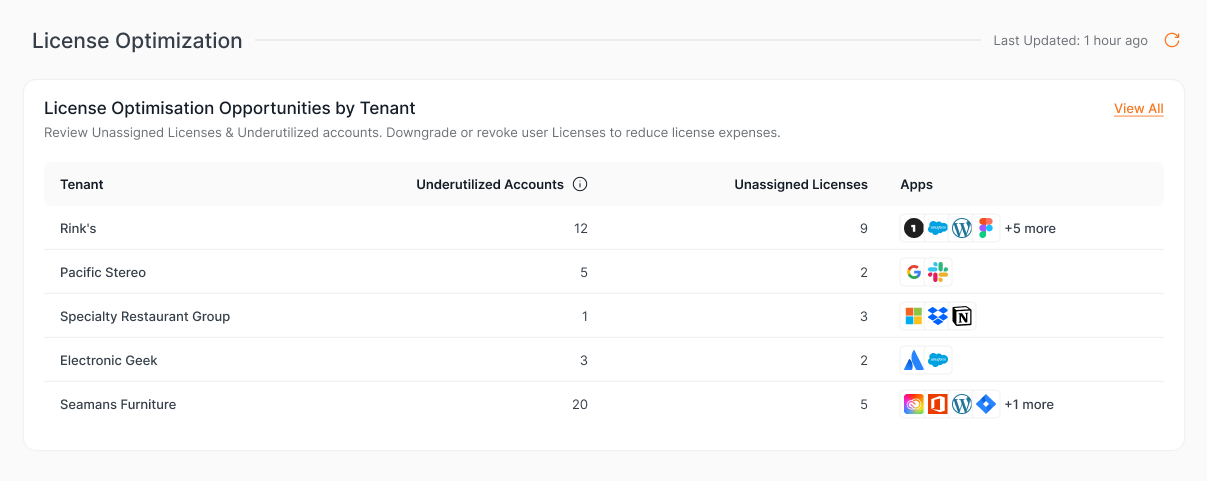 Previously in beta, the MTP now consolidates real-time tenant data into a global dashboard view, making it easy for MTP Admins to manage their tenants’ SaaS environments. Here’s a snapshot of what’s included: