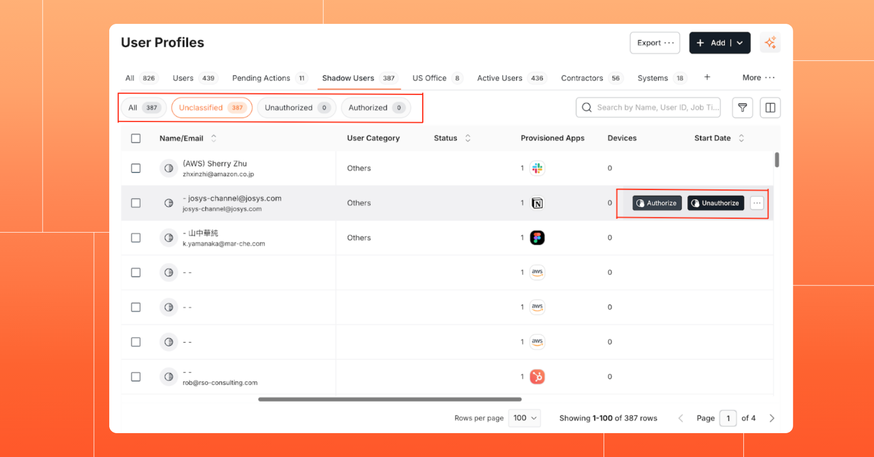 Shadow Users are now defaulted as “Unclassified”. Admins can label them as “Authorized” or “Unauthorized”.