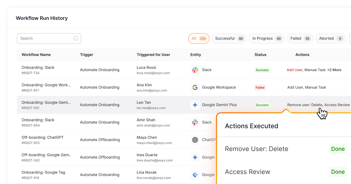 Easily track and analyze workflows with new filter options for Workflow Type, App Name, and Action.