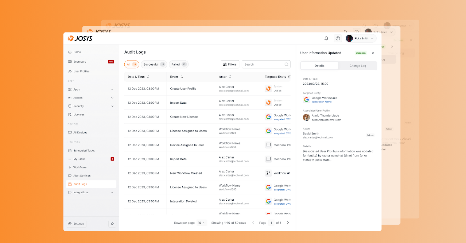 Introducing the exciting launch of Audit Logs – providing IT admins a clear, centralized view of all critical activities. Designed to enhance transparency, accountability, and security. This new feature simplifies monitoring activity across your Josys environment.
