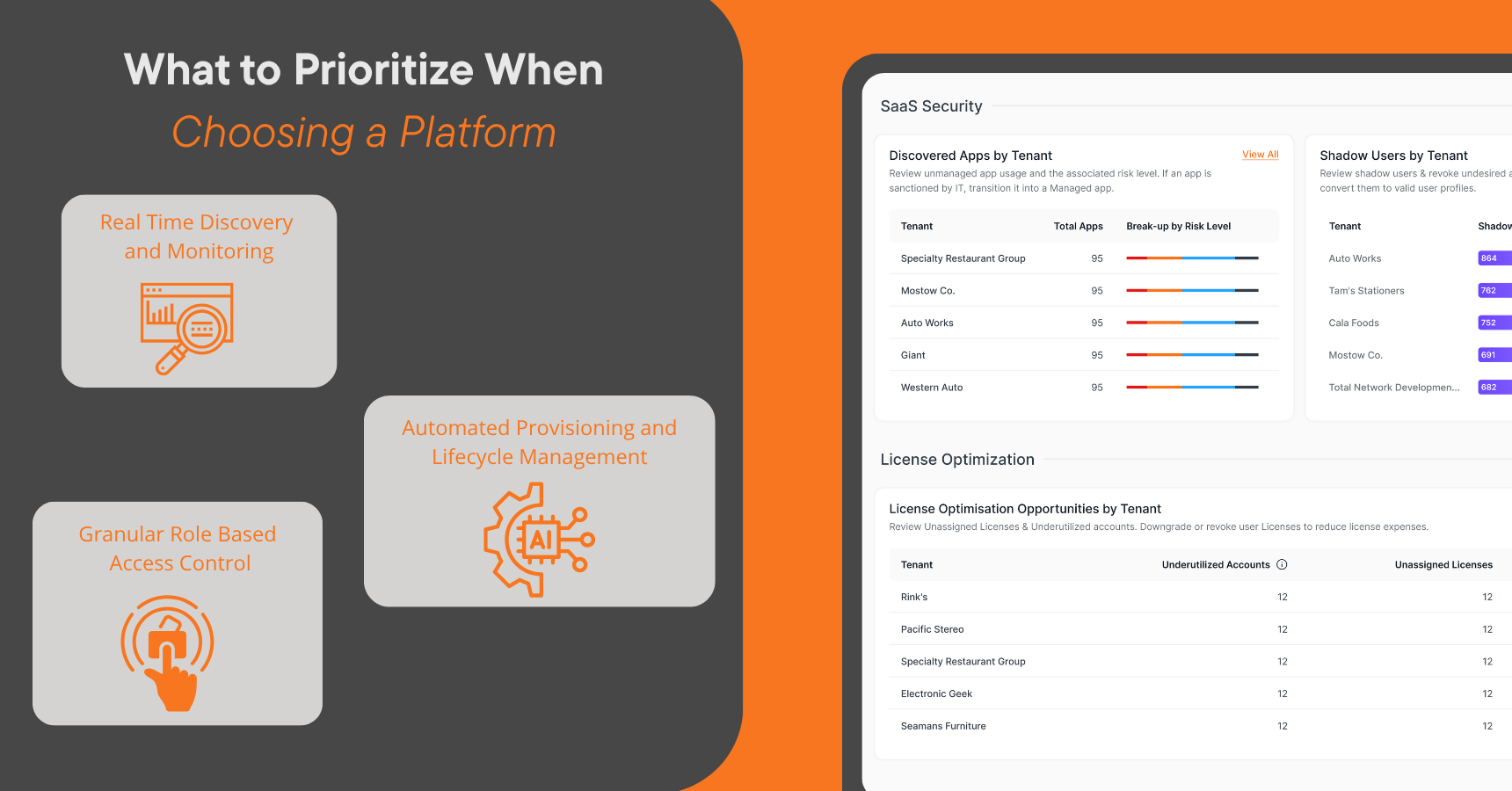 Centralized lifecycle actions such as managing user access, building rules based workflows for onboarding or offboarding, reclaiming and consolidating licenses, and tracking renewals are key to operational efficiency.