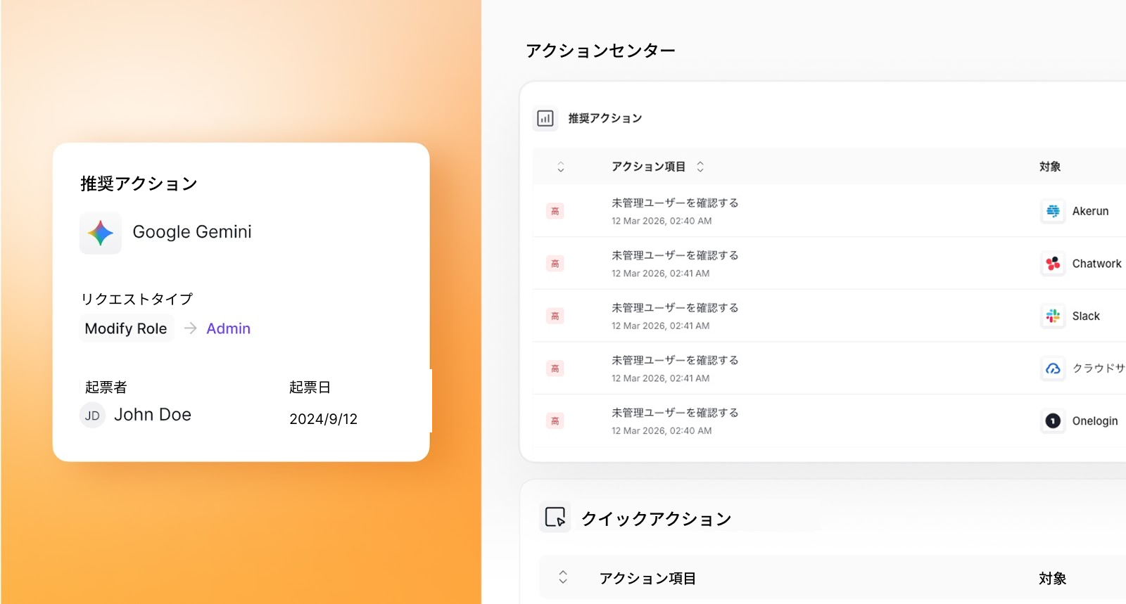 「アクションセンター」は、SaaS環境全体のタスクを確認・優先順位付け・実行するための一元管理ハブです。