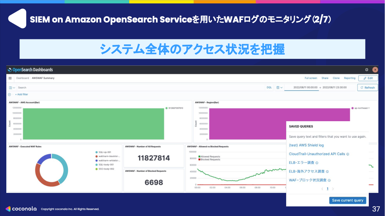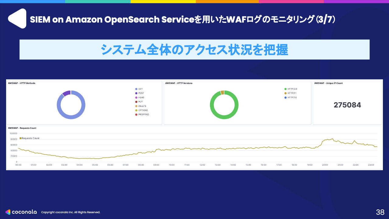 ココナラのセキュリティログの分析とは具体的にどのようなものだったのでしょうか。SIEM on Amazon OpenSearch Serviceによる打ち手について、特に「WAFログ」にフォーカスして解説いただきました。