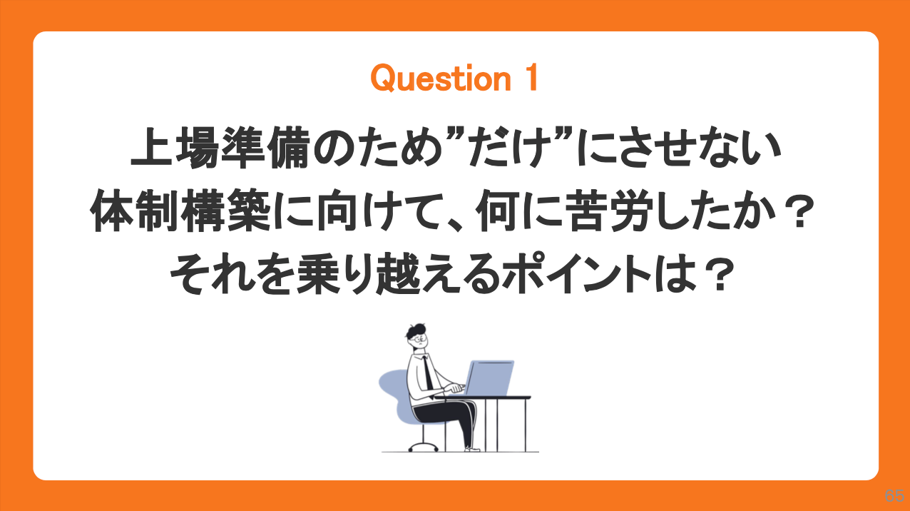 ―― セキュリティソリューションは入れて終わりではなく、その後の運用が大事であるというお話もありましたが、上場準備のため”だけ”にさせないために体制構築に向けて、苦労されたことや、それを乗り越えるためにどのようなことを意識されたのでしょうか。