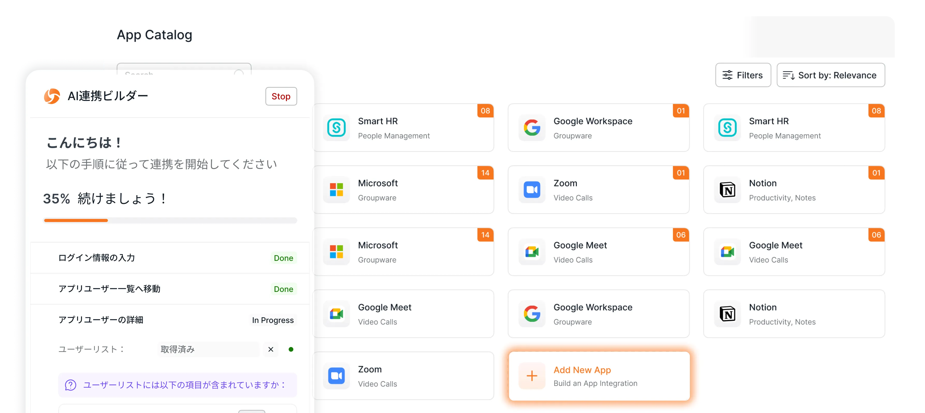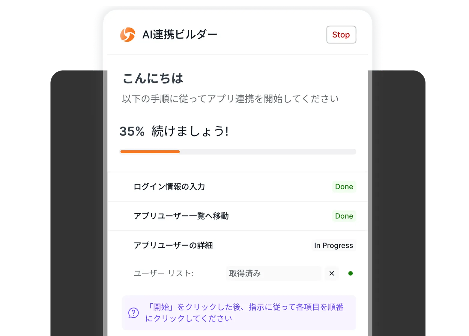 API未対応のSaaSも、ブラウザ操作で連携対象に追加。