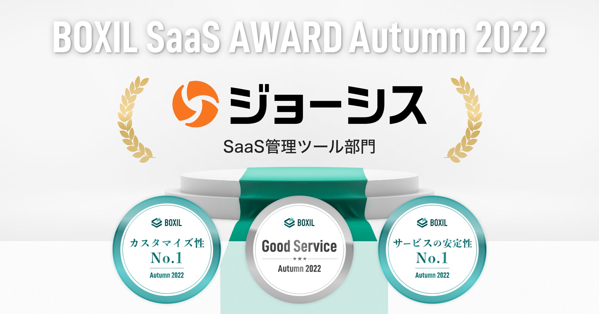 ITデバイスやSaaS管理などのコーポレートIT業務を自動化・アウトソースを可能とするプラットフォームを運営する、ラクスルグループのジョーシス株式会社(本社:東京都品川区、代表取締役社長CEO:松本恭攝)はスマートキャンプ株式会社(以下「スマートキャンプ」)が今最も評価されているSaaS*1 を表彰する「BOXIL SaaS AWARD Autumn 2022」でSaaS管理ツール部門「Good Service」「カスタマイズ性No.1」「サービスの安定性No.1」に選出されたことをお知らせします。