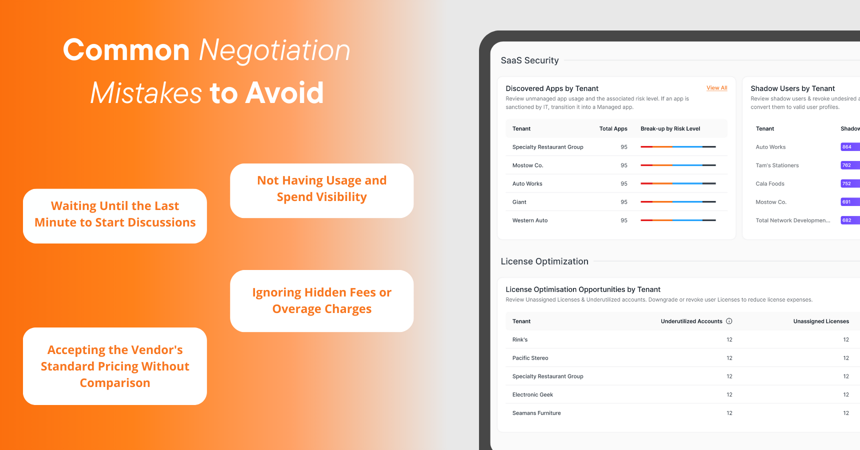 Many buyers enter negotiations without understanding their actual SaaS consumption patterns. This lack of visibility weakens their position when discussing pricing models and contract terms.