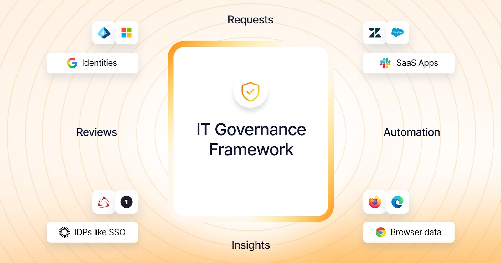 Today, you need clear rules to make smart decisions, allocate resources well, and crush risk across your tech stack. That's what a good governance framework does. It closes the gap between the IT team and company goals, making sure every tech investment pays off and gives you 100% control.