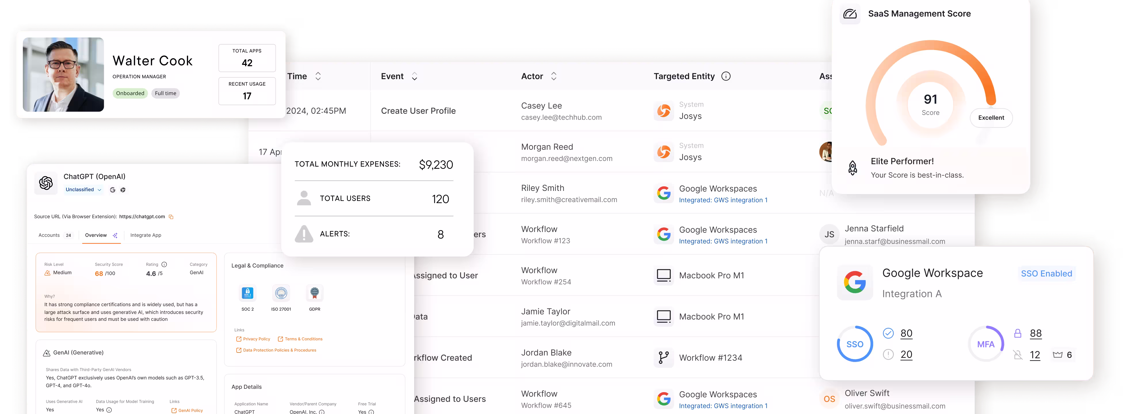 The industry’s first analytics dashboard for surfacing and addressing security and efficiency gaps in effective SaaS management. The new dashboard incudes a SaaS Management Score, global SaaS insights, and action-based recommendations.