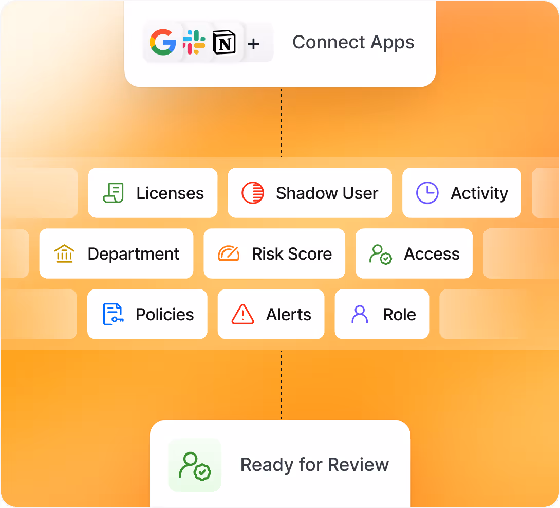 Ditch manual spreadsheets! Bring all your Identity data into one place - user profiles, apps, files and their access levels - without any blind spots
