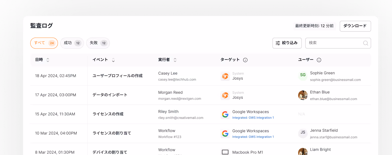 ジョーシス上で行われたすべてのプラットフォーム操作を記録することで、強固なコンプライアンスと監査対応を実現します。